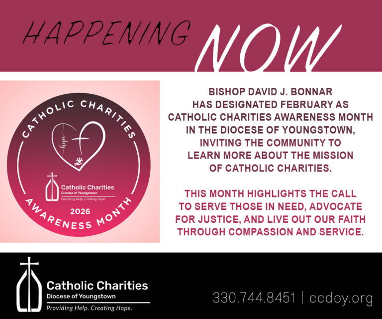 In an earlier generation, vocation appeals were more “analog” than today, but just as earnest and necessary. This 1960 Catholic Exponent shows Father Frances Snock, assistant pastor at Saint Matthias in Youngstown, viewing the display put together by ninth graders at the parish junior high school. They used posters, publications, articles and books in the school lobby to draw interest in religious life. The girls, left to right, are Doris Pechurow, Carole Sebest and Elaine Pavlich. In 1960, there were more than 600 sisters from 16 different religious communities serving in the diocese in parishes, schools, hospitals and homes for the aged. It was a period marking a height in numbers of young women answering the call to vowed religious life